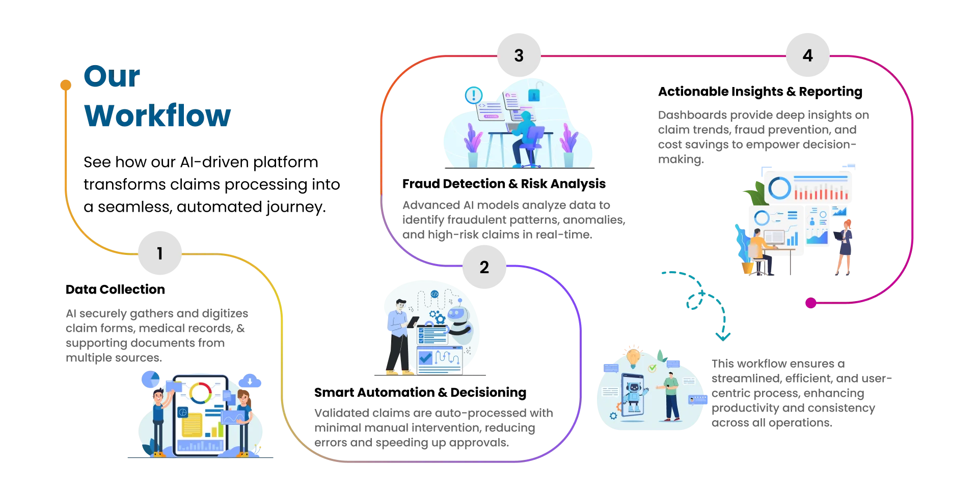 Leveraging AI-powered automation, we help insurers detect fraud in real time, policy portability, ensure accurate claim adjudication, speed up end-to-end processing, maintain regulatory compliance, and optimize costs across health and general insurance workflows.